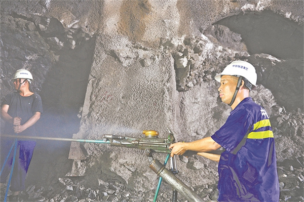 “初噴混凝土是在開挖后立即進行的支護措施,主要目的是迅速封閉圍巖,防止其風化和剝落。”李友坤解釋道。